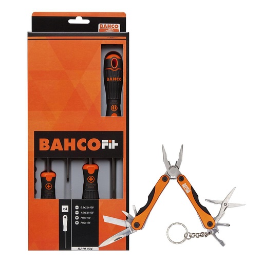 JUEGO DESTORNILLADOR 4 PZA+MULTIHERRAMIENTA 10 FUNCIONES BAHCO (B219.004+MTT121)